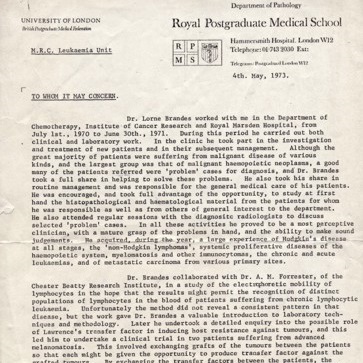 Letter of recommendation from Galton on behalf of former colleague Lorne Brandes.